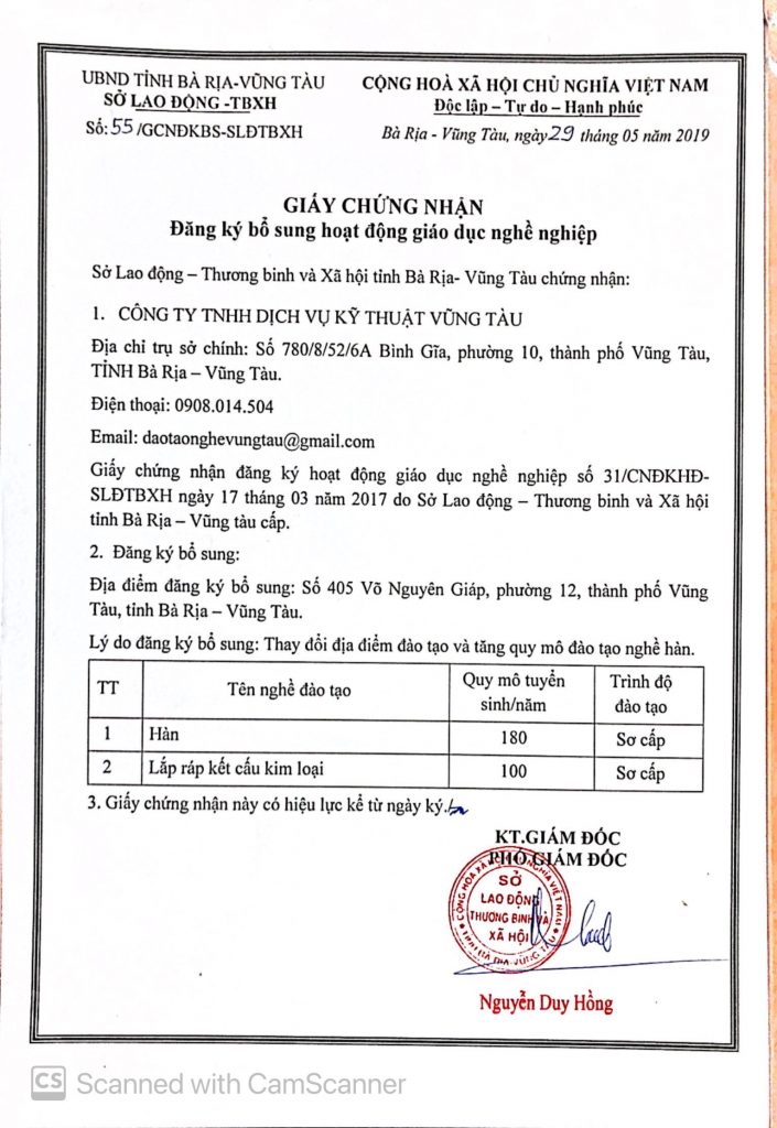 CÔNG TY CỔ PHẦN ĐÀO TẠO NGHỀ VŨNG TÀU – Mã số doanh nghiệp: 3502319204